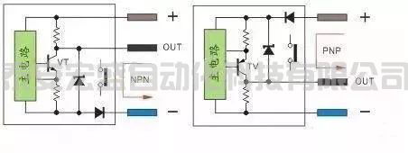 PNP型當(dāng)傳感器有檢測(cè)信號(hào)VT導(dǎo)通,正極的電流流向輸出端OUT,輸出端OUT電位接近正極,通常說(shuō)的低電平翻轉(zhuǎn)成高電平。