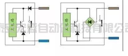 直流兩線(xiàn)制接近開(kāi)關(guān)分二極管極性保護(hù)與橋整流極性保護(hù),前者在接PLC時(shí)需要注意極性,后者就不需要注意極性。有源舌簧磁性開(kāi)關(guān)主要用在汽缸上做位置檢測(cè),由于需要信號(hào)指示,內(nèi)部有雙向二極管回路,因此也不需要注意極性;交流兩線(xiàn)制接近開(kāi)關(guān)就不需要注意極性。如圖10: