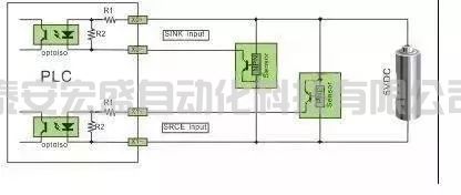 SINK漏型為電流從輸入端流出,那么輸入端與電源負(fù)極相連即可,說(shuō)明接口內(nèi)部的光電耦合器為單端共點(diǎn)為電源正極,可接NPN型傳感器。